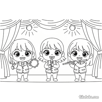 Chibi-Trio mit Tamburin und Flöte
