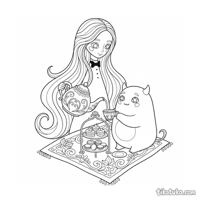 Ausmalbilder mit Tee und gemütlichen Szenen für Kinder