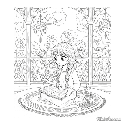 Die Ausmalbilder zeigen Tee in vielen lustigen und fantasievollen Situationen. Es gibt marschierende Teetassen, eine Boba-Becher-Parade und einen Axolotl, der über verschütteten Tee erschrickt. Auch gemütliche Szenen wie eine Prinzessinnen-Tee-Party, eine Oma auf der Veranda oder ein lesendes Kätzchen in der Fensternische sind dabei.