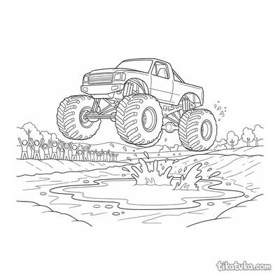 Monster Truck springt über Schlammlache