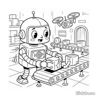Retro-Roboter sortiert Pakete