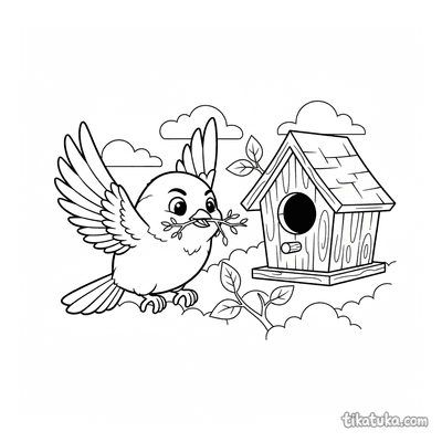 Meise bringt Zweige zum Vogelhaus