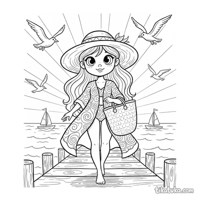 Aquarell-Sketch-Strand-Outfit Gehend auf Pier