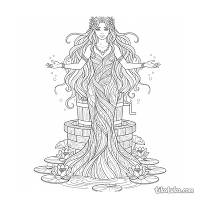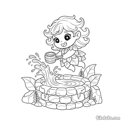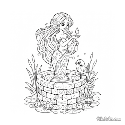 In den Ausmalbildern tauchen Wassernymphen aus Brunnen auf oder wachen als Wächter über magische Quellen. Du findest Szenen mit freundlichen Wassergeistern am Brunnenrand, verspielten Wassermädchen und mystischen Wesen wie der Rusalka. Die klaren Schwarz-Weiß-Konturen der Malvorlagen sind ideal für Kinder, um die Details der geheimnisvollen Wasserwesen auszumalen. Du kannst alle 15 Wassergeist-Bilder kostenlos herunterladen, bequem als PDF ausdrucken oder direkt im Browser online ausmalen.