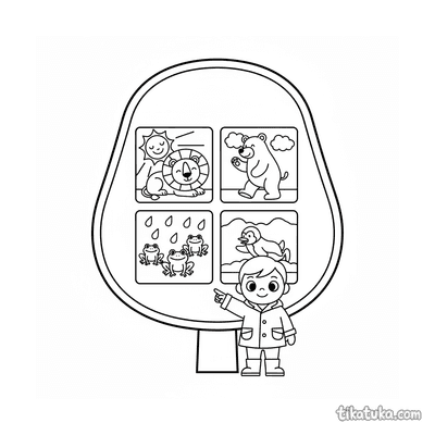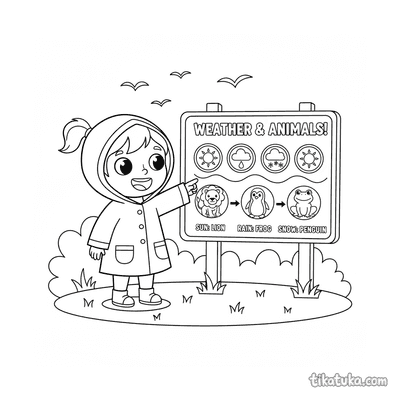 Diese Sammlung von Ausmalbildern dreht sich um das Thema Wetter. Kinder können verschiedene Wetterphänomene und -symbole kennenlernen und kreativ gestalten.