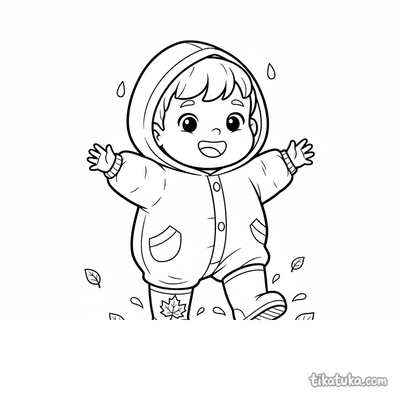 Kleinkind stampft auf nassem Bürgersteig