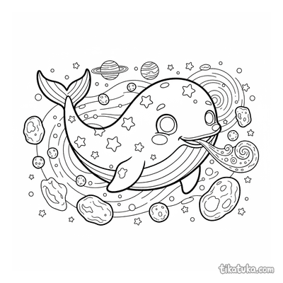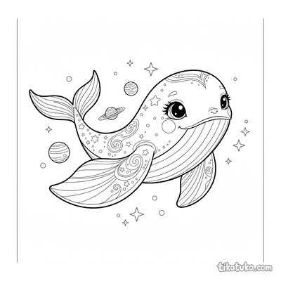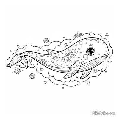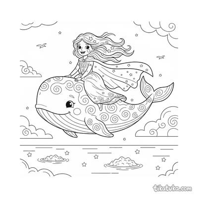 In den Bildern segeln Himmelswale über Marmorpaläste, kosmische Wale schwimmen durch Asteroidenfelder und Nebel, und eine Prinzessin reitet auf einem Wolkenwal. Auch niedliche Wal-Kälber und leuchtende Weltraumwale sind dabei. Alle 19 Vorlagen stehen als klare Schwarz-Weiß-Konturen zum Herunterladen bereit, ideal für einen störungsfreien Ausmaldruck. Du kannst die Bilder direkt ausdrucken oder sie bequem online mit unseren digitalen Werkzeugen ausmalen.