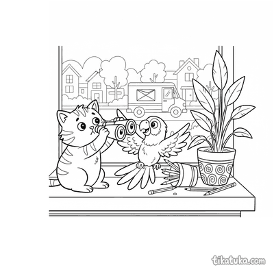 Eine Fensterbank ist ein gemütlicher Ort für kleine Abenteuer und ruhige Momente. Diese Malvorlagen zeigen, was sich alles auf einer Fensterbank abspielen kann. Sie laden Kinder ein, in verschiedene Szenen einzutauchen und sie mit Farbe zu füllen.