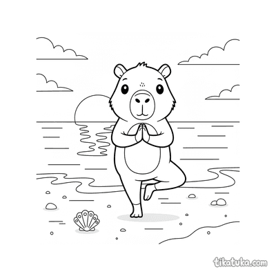 Capybara in Yoga-Pose bei Sonnenuntergang